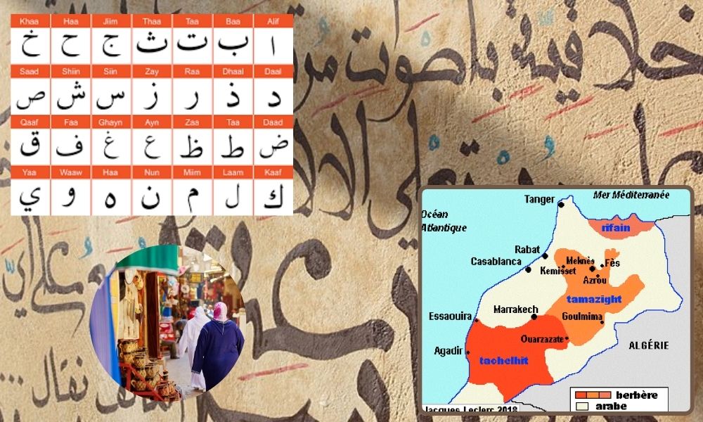 El árabe y el amazigh son los dos idiomas oficiales en Marruecos. El árabe se usa en la administración, los medios y la escuela. La variedad de árabe que se emplea de manera informal es el árabe marroquí o darija.